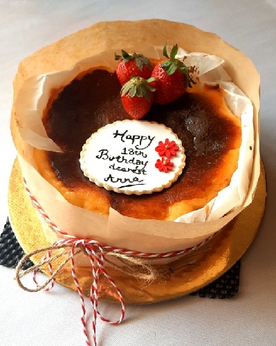 A baked cheesecake with a delectable lotus biscoff spread.(egg based)